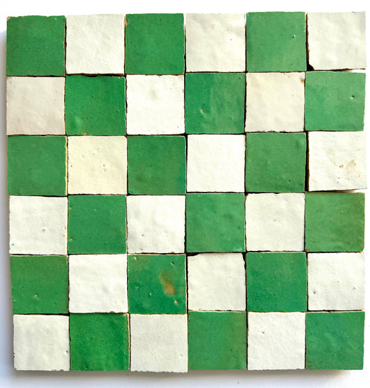 2X2 Checkerboard Zellige in Ivory Cloud and Green