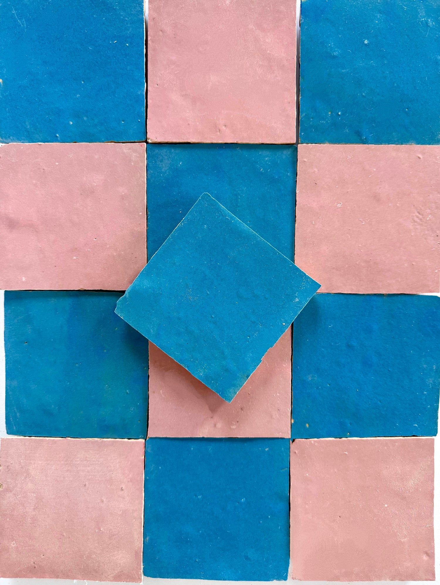 Zellige tiles are all about character. We suggest sampling more than one piece to get a full sense of the texture, tone, and variation.