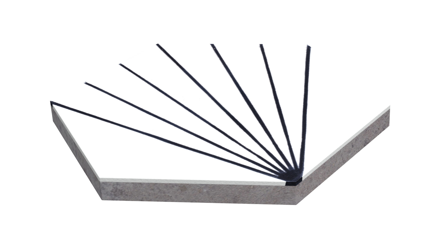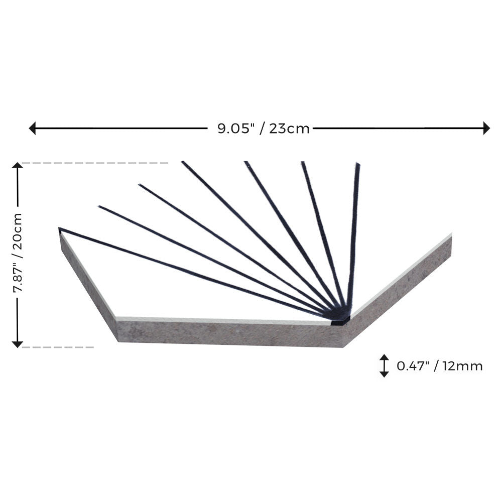 - Hexagon – 9" x 8" x ½" (230 x 200 x 12 mm)